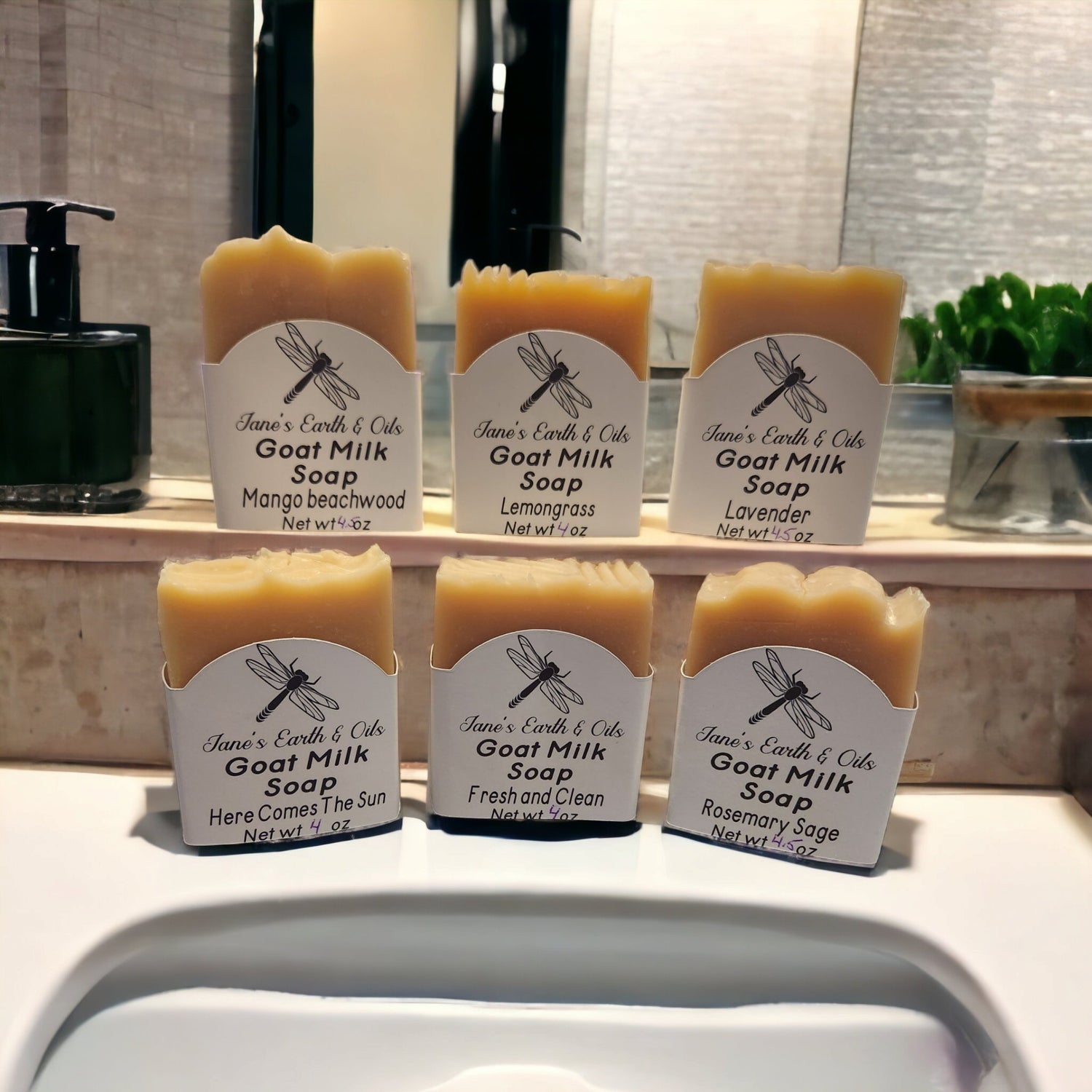 Our goat milk soaps are made with fresh local goat milk, saponified...
